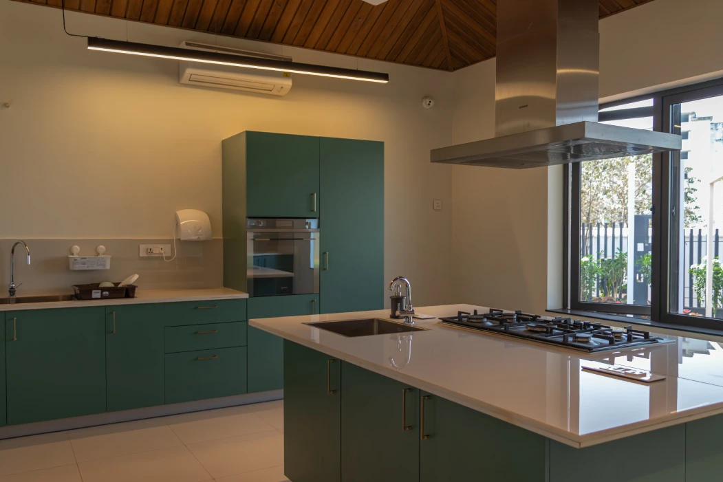 At Soukhya, we have a fully functional kitchenette. Additionally, we run a culinary life skill course in this space, empowering individuals with essential cooking knowledge and techniques. Beyond workshops and classes, our kitchenette serves a practical purpose for collaborators staying overnight on the premises. It becomes a communal space where individuals can prepare meals, fostering a sense of autonomy and connection through shared culinary experiences.